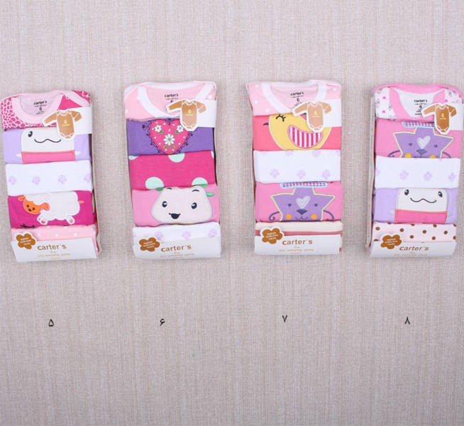زیربیست, خرید اینترنتی, جدیدترین انواع لباس, لوازم آرایشی و بهداشتی, کتاب, لوازم خانگی، کفش، پوشاک, خرید لباس, خرید لباس کودک, فروشگاه لباس, فروشگاه اینترنتی لباس, خرید تی شرت, خرید لباس, تیشرت, فروشگاه اینترنتی پوشاک, مینا کاری, سفره قلمکار, بادی آستین بلند 5 عددی دخترانه 110527 سایز 6 ماه مارک Carters
