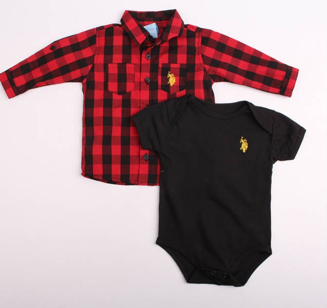 ست پسرانه (زیردکمه و پیراهن) 12341 سایز 3 تا 9 ماه مارک US POLO ASSN