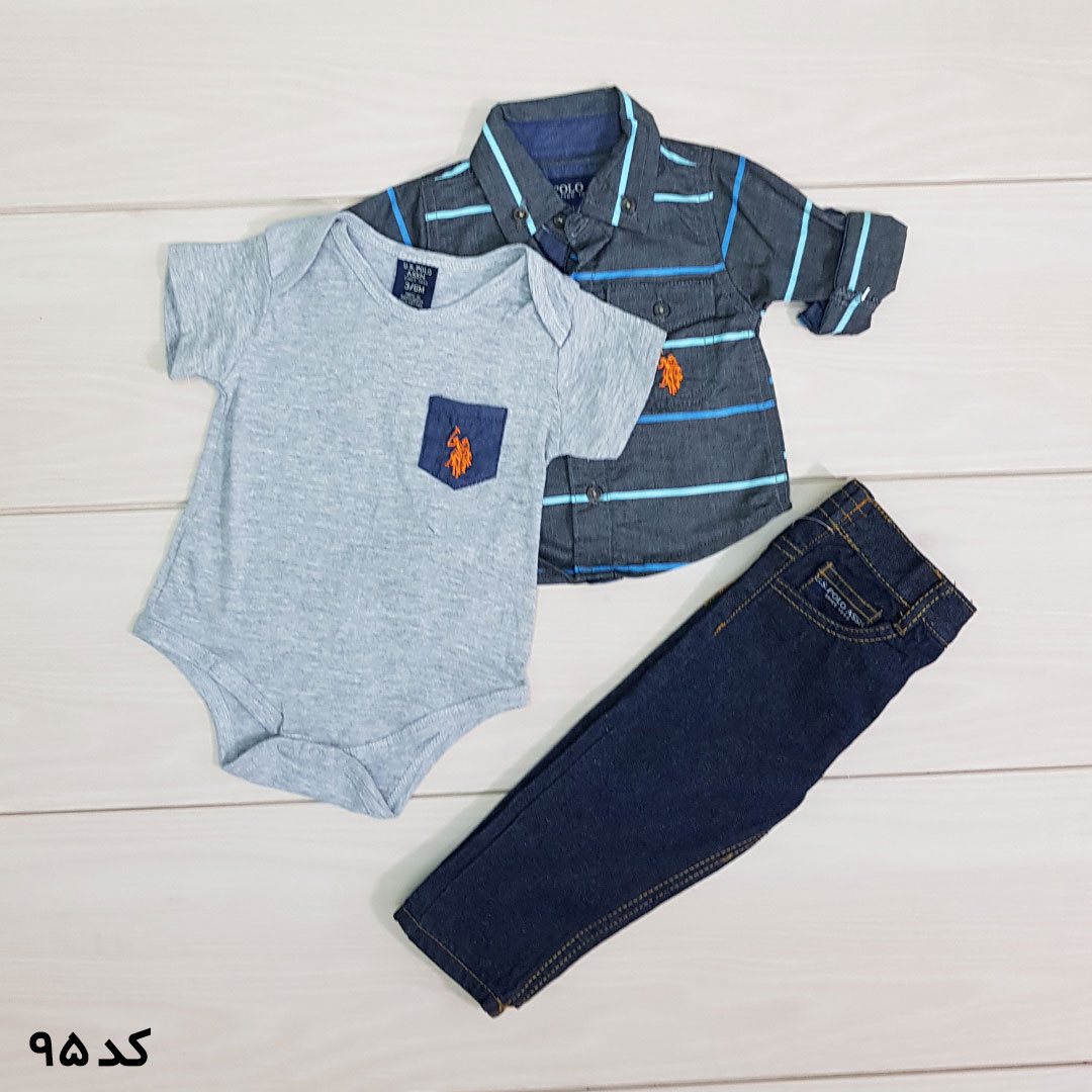 ست سه تکه پسرانه 11813 سایز 3 تا 9 ماه کد 95