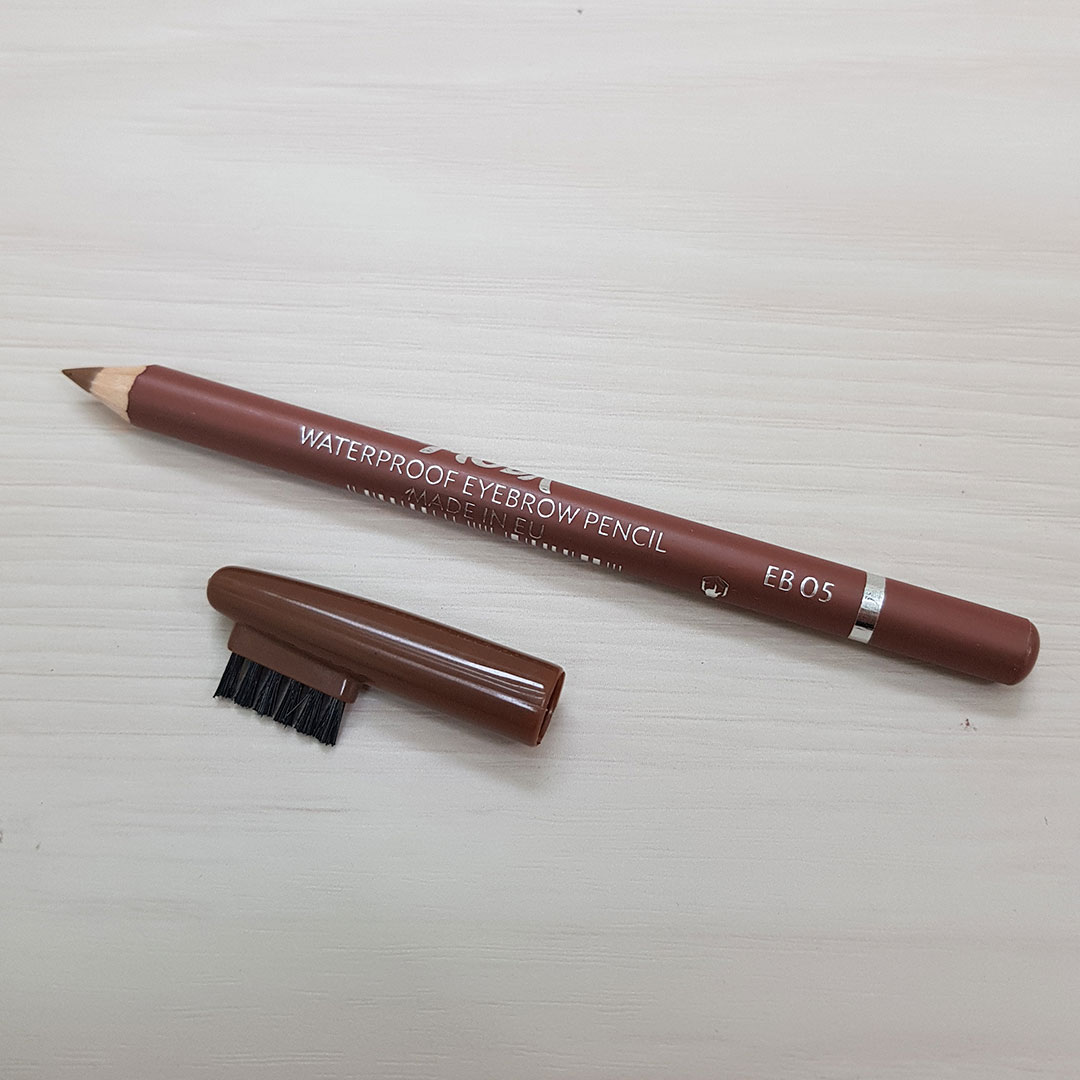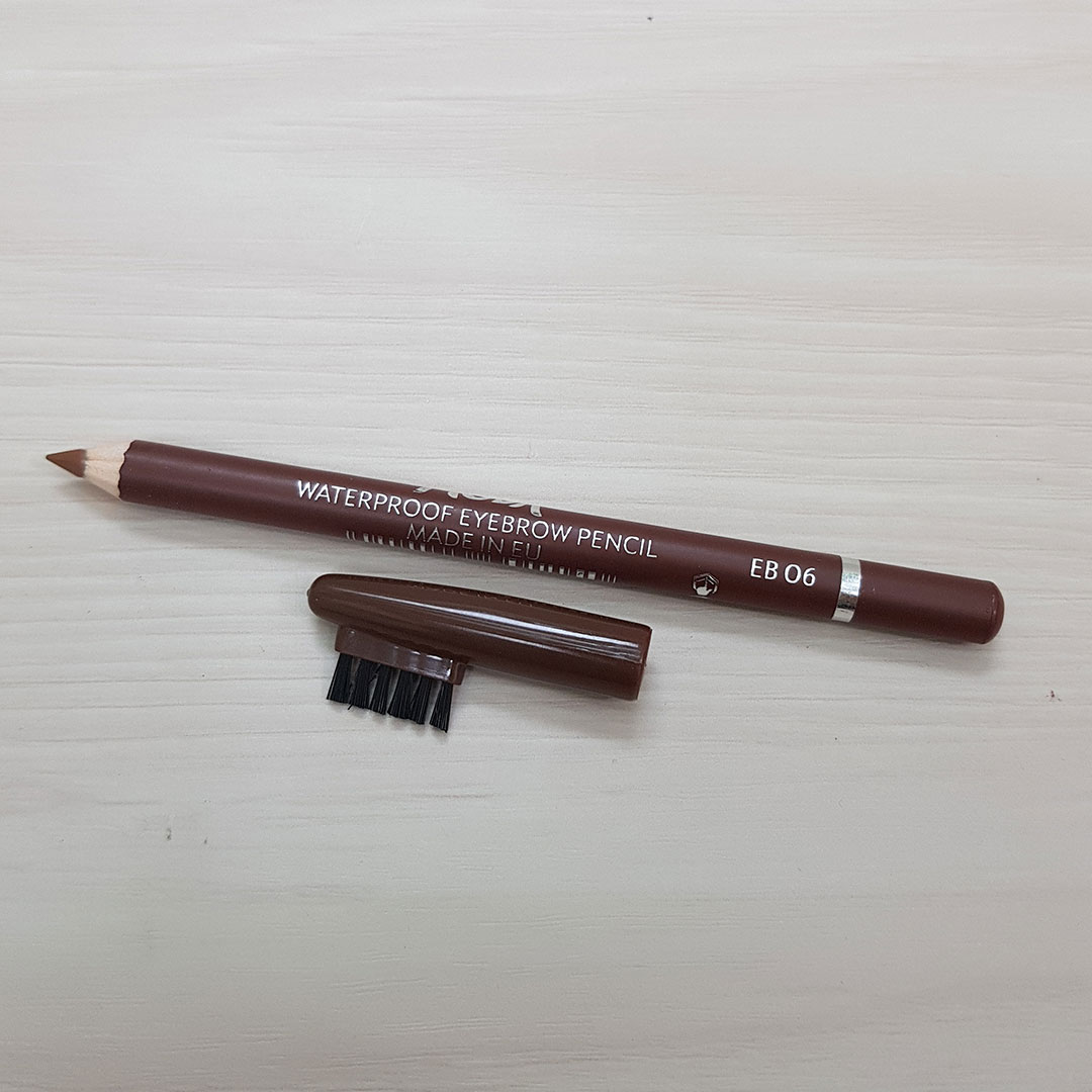 درب این مداد دارای یک برس جهت پخش و یکنواخت نمودن رنگ بوده ، همچنین ابروها را مرتب می سازد