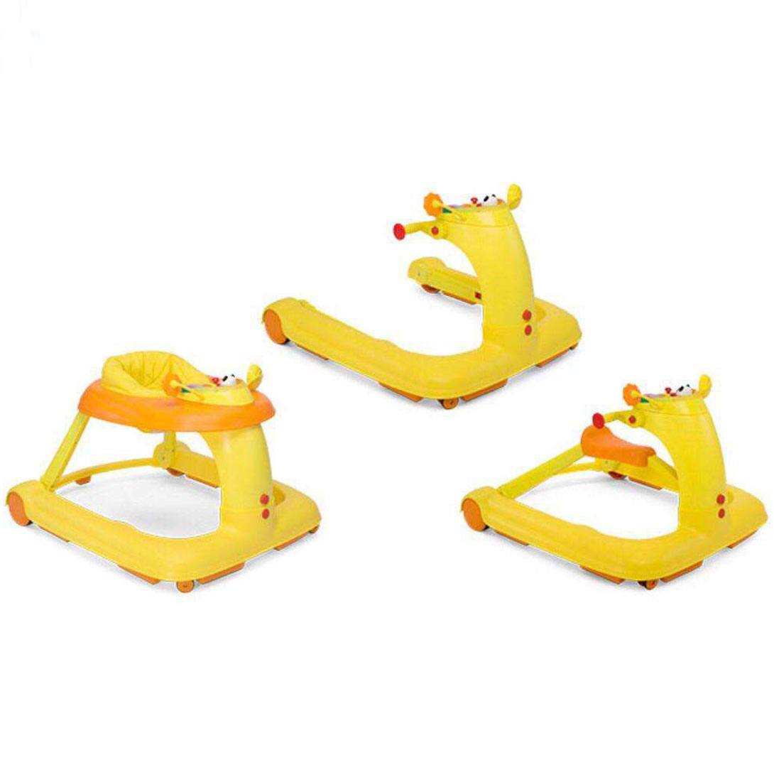 استفاده بعنوان روروک 9ماهگی: استفاده بعنوان واکر و برای برداشتن اولین گام ها 18ماهگی: استفاده بعنوان دوچرخه به کمک صندلی آن -همراه با پنل موزیکال و عروسکی برای بالا بردن توانایی کار با دست کودک با امکان جدا شدن -امکان تنظیم ارتفاع نشیمنگاه و فرمان آن در 2وضعیت -برداشته شدن گارد عقبی روروک برای اینکه نوزاد بتواند بصورت مستقل محل قرارگیری پای خود را هنگام حرکت تنظیم کند -همراه با ترمزگیرهای مطمئن که زمانی که نوزاد به اختلاف ارتفاع می رسد عمل کرده و مانع از واژگونی کودک می شود -صندلی با امکان جمع شدن راحت در قسمت جلو زمانی که از آن استفاده نمی کنید
