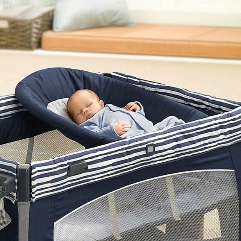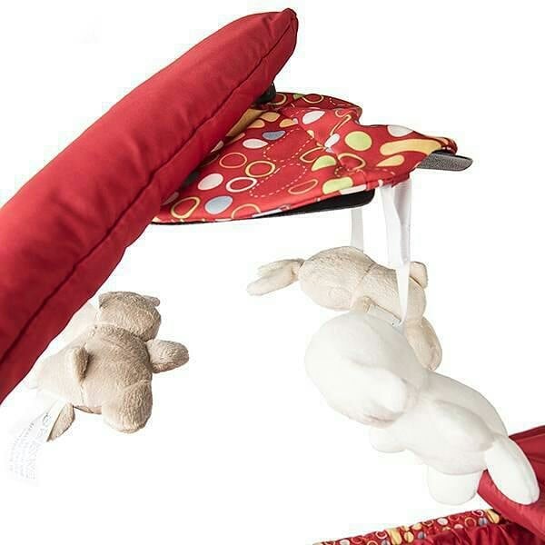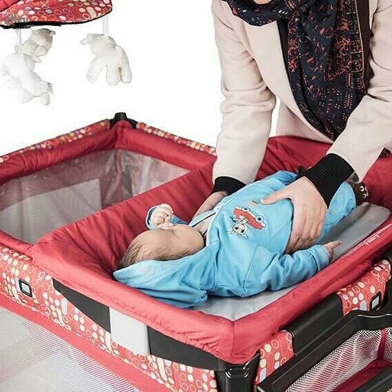 فضای مناسب جهت بازی و استراحت نوزاد پارچه قابل شست و شو تشک تعویض نوزاد تشک نرم و طبی دارای آویز عروسکی همراه با ننو شیب دار مناسب جهت استراحت نوزادارای آویز تخت با سه عروسک دارای یک سبد جانبی جهت نگهداری ملحفه و پوشاک نوزاد دارای روتشکی قابل تعویض و شستوشو در ماشین لباسشویی قابلیت تنظیم قرارگیری تشک جهت نگهداری کودکان با وزن 7 کیلوگرم قابلیت تنظیم تشک در انتهای تخت جهت نگهداری کودکان با وزن 13.600 کیلوگرم ابعاد 114.3 × 116.86 × 78.75 وزن 16 کیلوگرم
