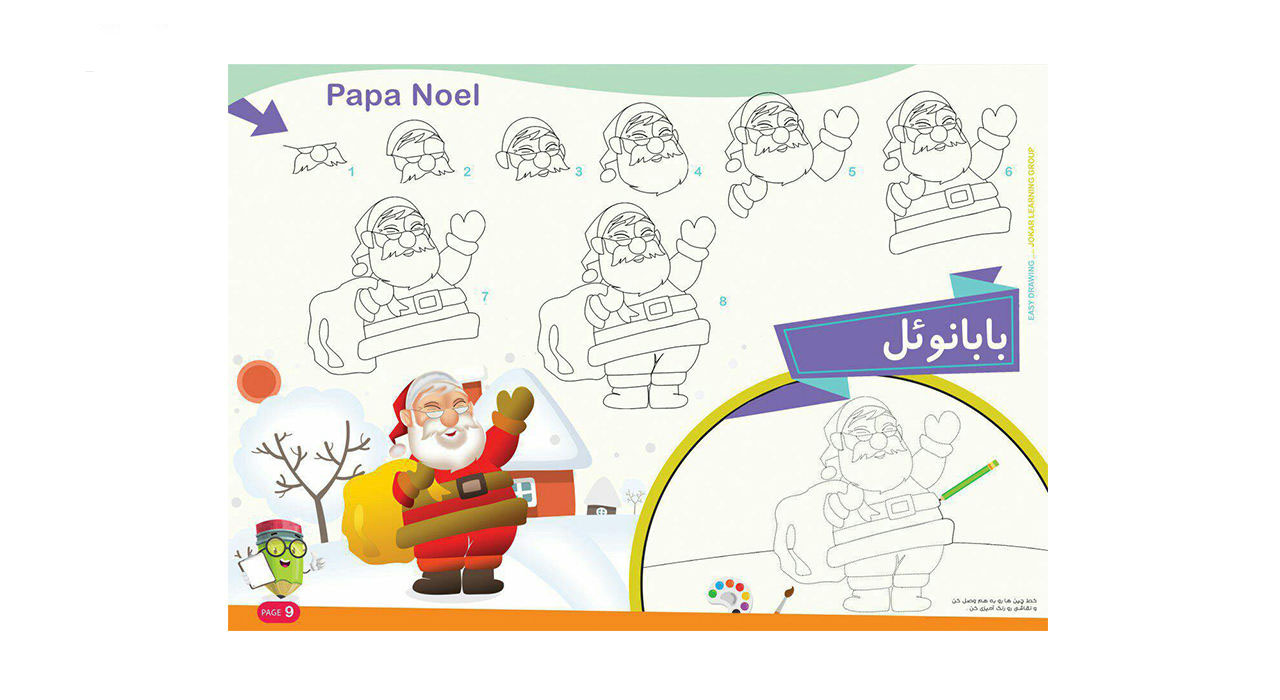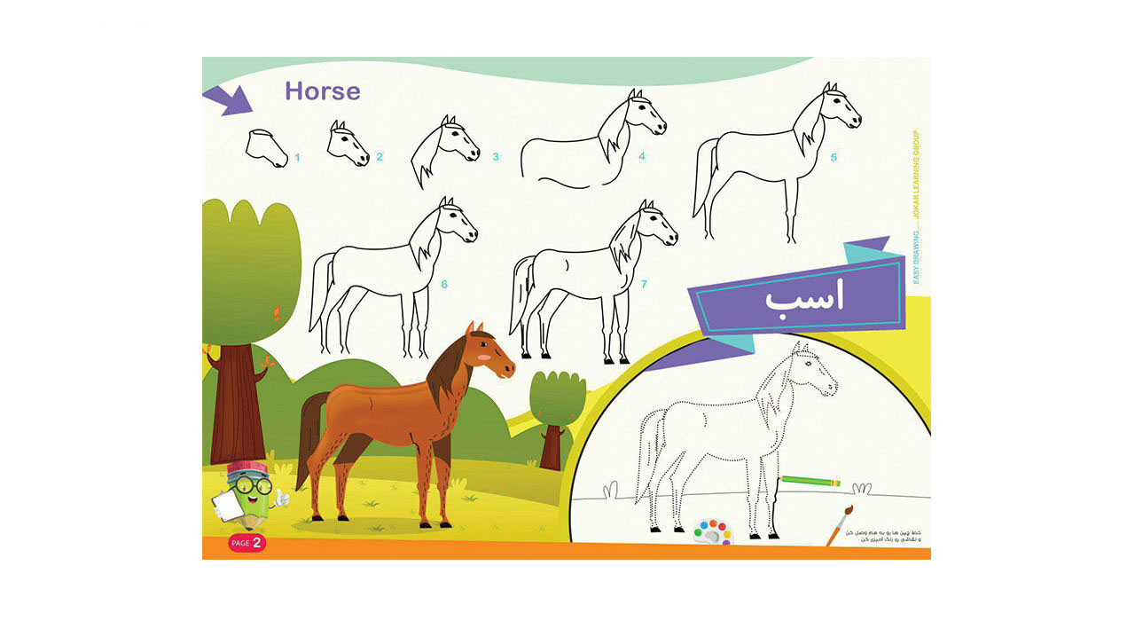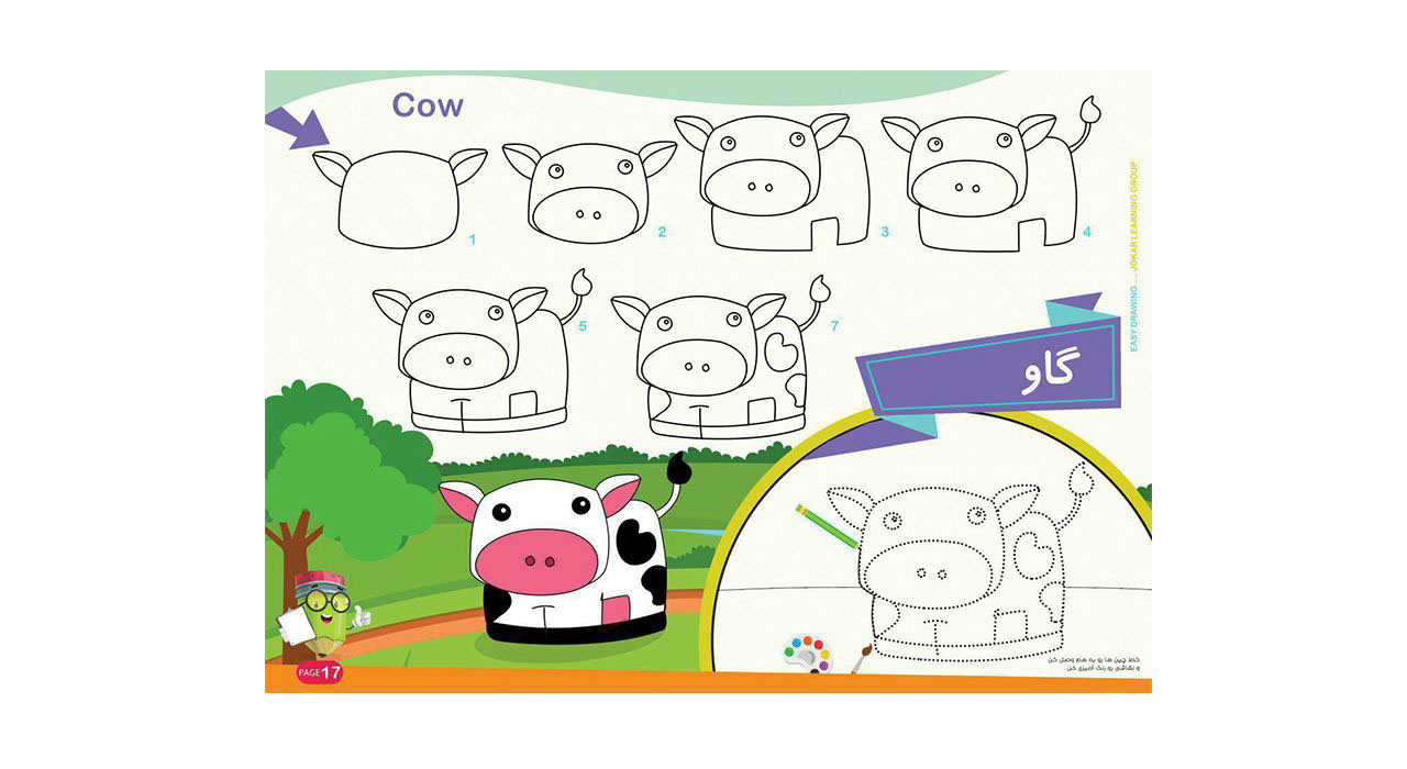 به این ترتیب که مراحل کشیدن یک حیوان یا یک شی در کتاب به صورت پشت سر هم کشیده شده است و کودک می تواند با دنبال کردن این مراحل تصویر نهایی را ترسیم نماید