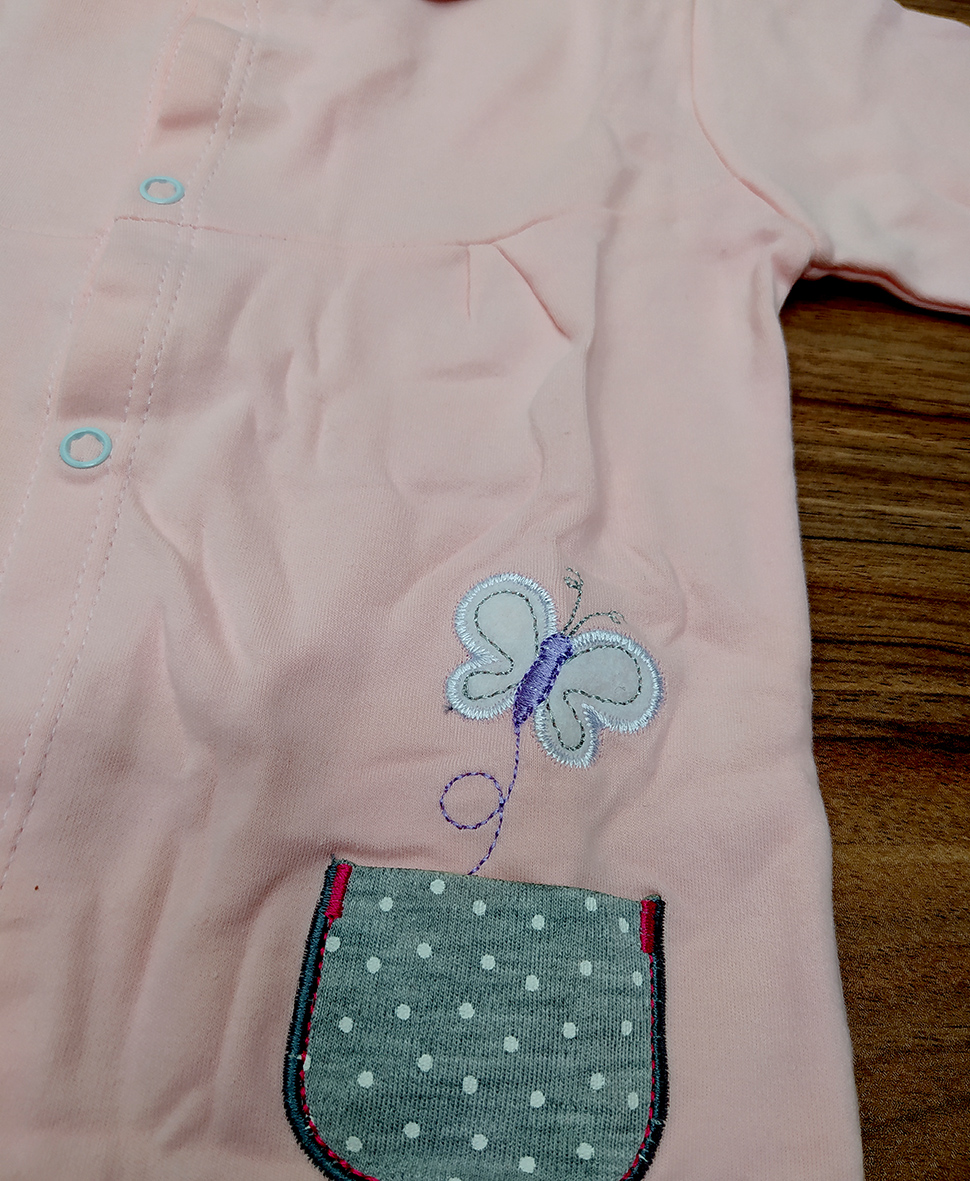 سایز جلو دکمه دار3 تا 6 ماهگی قد کل 28.5 عرض کار 23 اندازه آستین 20