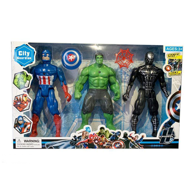 شخصیت های محبوب کودکان از جمله بتمن سوپرمن هالک و مرد عنکبوتی میباشد. جنس این آدمک ها از پلاستیک محکم است