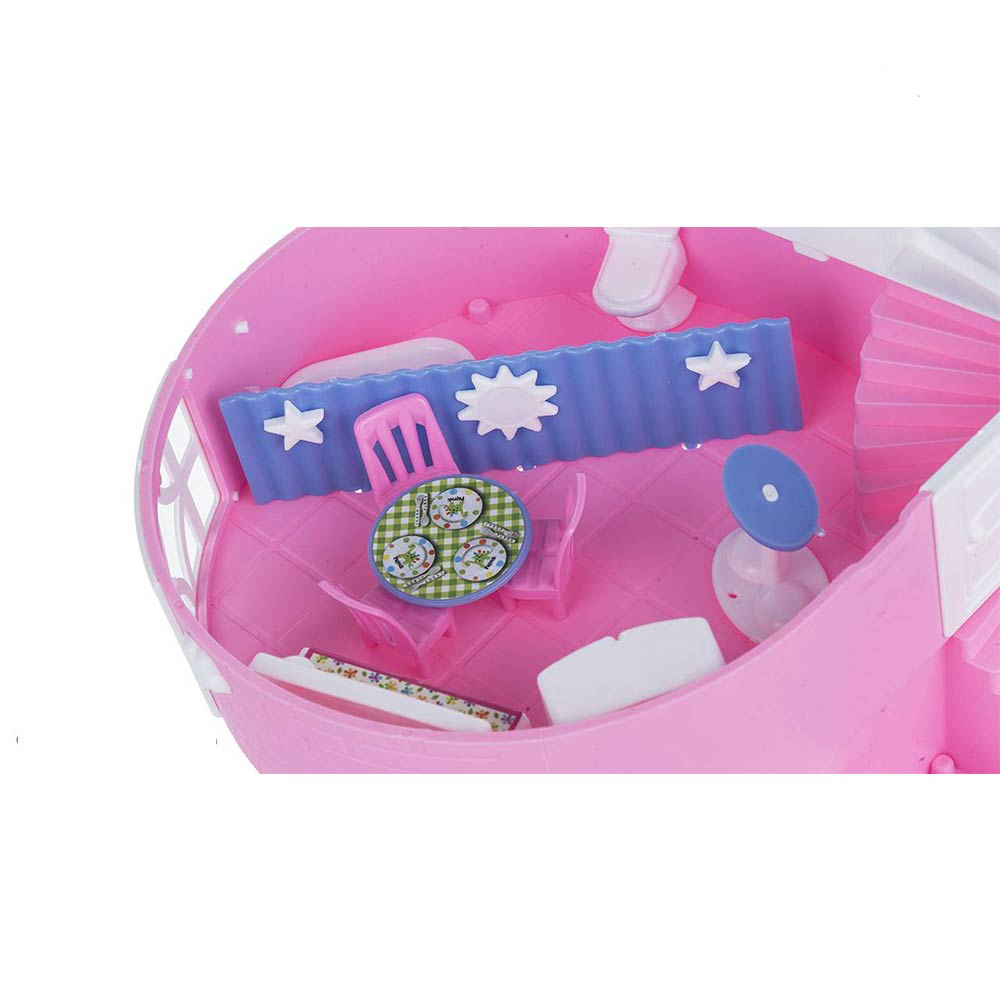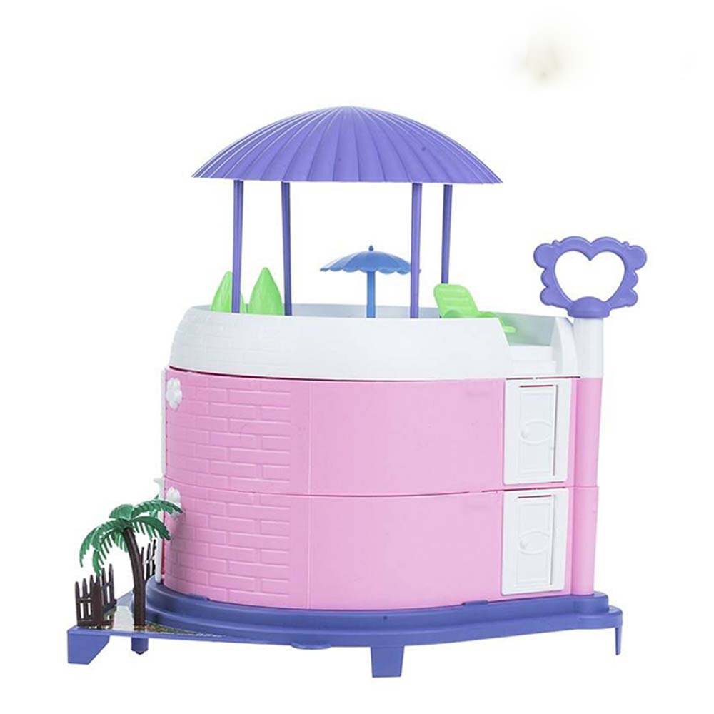این خانهی عروسکی دارای سه طبقهی مجزا بوده و وسایل مختلف یک ویلای لوکس درون آن قرار گرفته که کودک میتواند متناسب با سلیقه خودش این وسایل را جابهجا کند