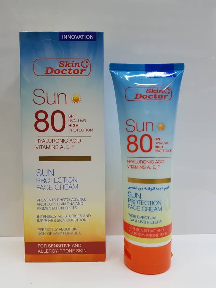 کرم ضد آفتاب صورت دکتر اسکین SPF 80 بی رنگ بوده و حاوی هیالورونیک اسید ۱۲۵ میل می باشد. این کرم ضدآفتاب برای استفاده روزانه و مسافرت های شما به خصوص زیر آفتاب سوزان بسیار مناسب می باشد.