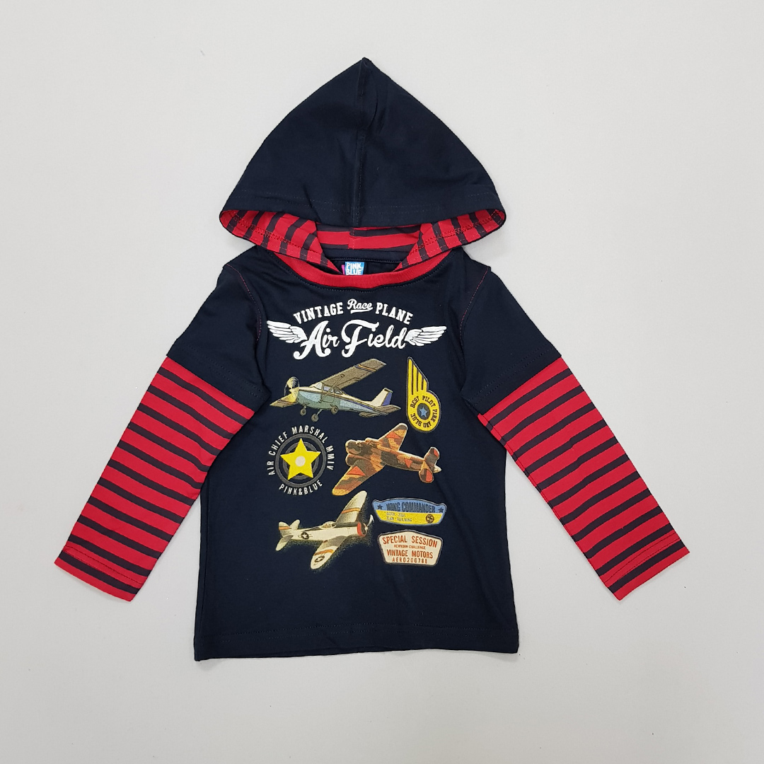 بلوز کلاه دار پسرانه 30350 سایز 6 تا 24 ماه مارک PINK BLUE