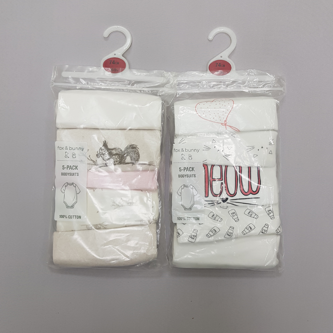 بادی 5 عددی دخترانه 30806 سایز بدوتولد تا 18 ماه مارک FOX&BUNNY *