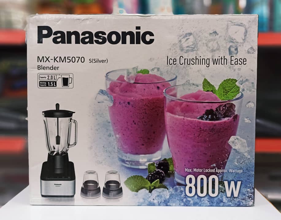 قابلیت خرد کردن یخ مجهز به فیوز حرارتی داخلی جهت جلوگیری از اضافه بار پارچ ۲ لیتری (۱.۵ لیتر مدرج) دارای دو عدد آسیاب دارای دکمه های تنظیم سرعت ، دکمه های پالس و یخ شکن ساخت مالزی با کیفیت عالی